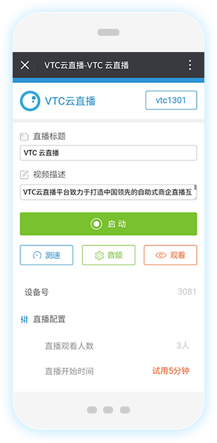 VTC云直播是南京微特喜网络科技有限公司自主研发的一套包括接入终端、业务云平台和承载云平台的社交网络直播系统。